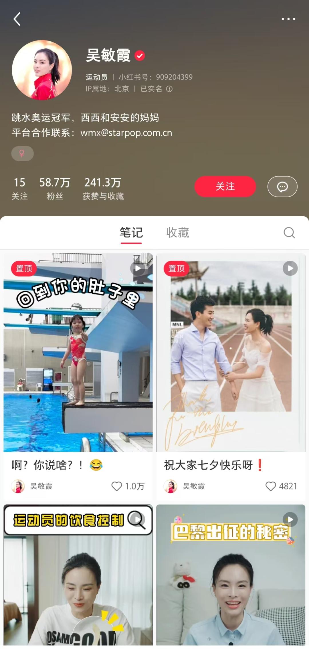 还有“跳水皇后”吴敏霞,与老公张效诚一起也当起了视频博主。通过分享自己的家庭生活和奥运知识,她在抖音、B站、小红书粉丝数都有超50万粉丝,算是全平台发展最突出的退役运动员之一。