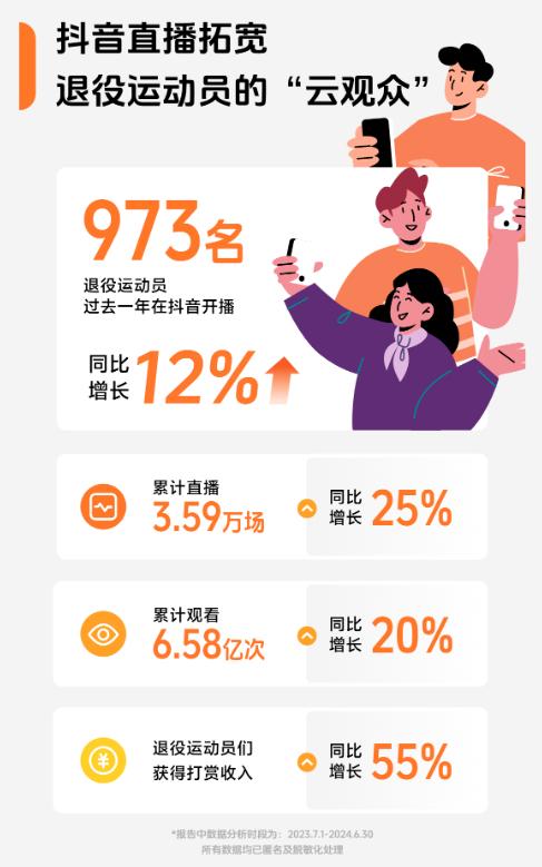 根据《2024抖音退役运动员数据报告》,过去一年中,超过2500名退役运动员活跃在抖音平台上,他们的内容涵盖了教授体育知识、解说重大赛事、提供专业技巧解答、普及防护要点以及记录运动生活等方面。发布的视频总分享量同比增长了73%,总收藏量同比增长了31%。