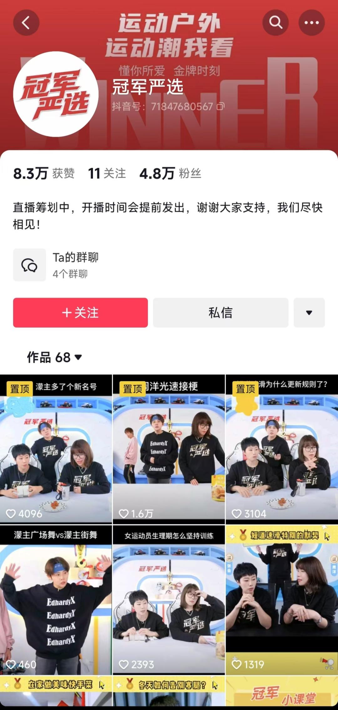 当运动员的IP效应、专业能力撞上社交媒体上兴起的“全民健身”风潮,冠军们的成绩和名气也成为自身价值的催化剂。不少退役冠军,在短视频平台上混得风生水起。这些冠军们的红火,也助推了抖快书上体育内容的新业态。
