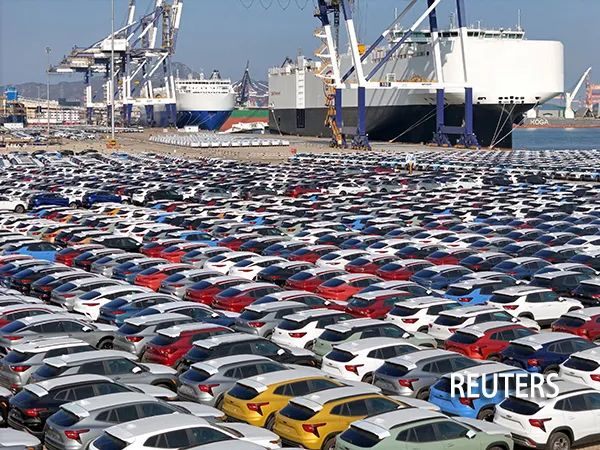 在港口等待出口的汽车(资料图、1月、中国山东省)