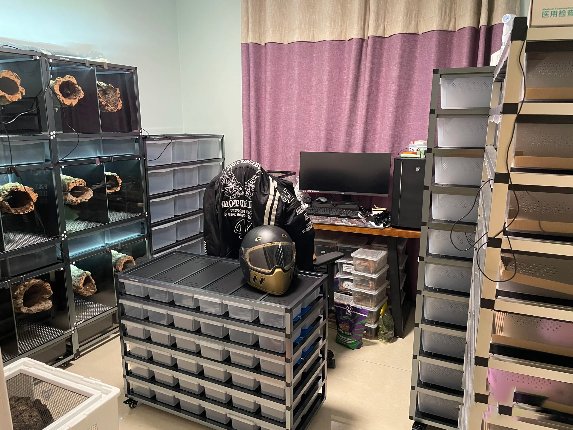 为此,顾先生家专门腾出了一整个房间来饲养,“每次开箱都很快乐,就像买泡泡玛特盲盒一样,不停地买,不停地收集,我现在的爬房一共能放60条守宫、100条蛇,希望未来能全部装满。”