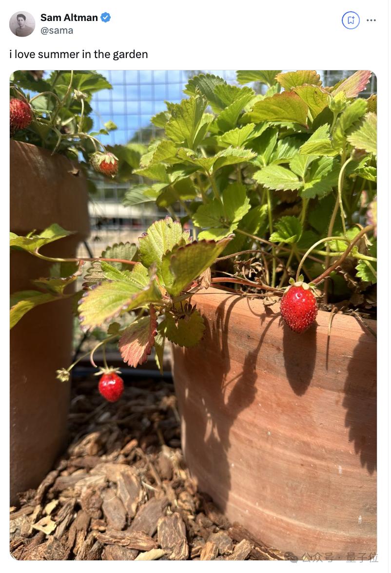 随后奥特曼又发了一个浮想联翩的推文,正是他花园里的草莓照片,并配文:i love summer in the garden。