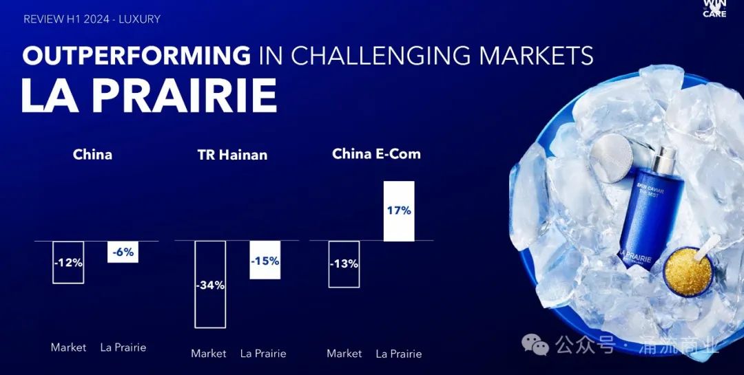 “纵观La Prairie上半年的业绩,我们看到了积极的迹象。在中国,上半年奢侈护肤品市场下滑了12%,但La Prairie 的销售量下滑低于市场,仅下滑了6%。”