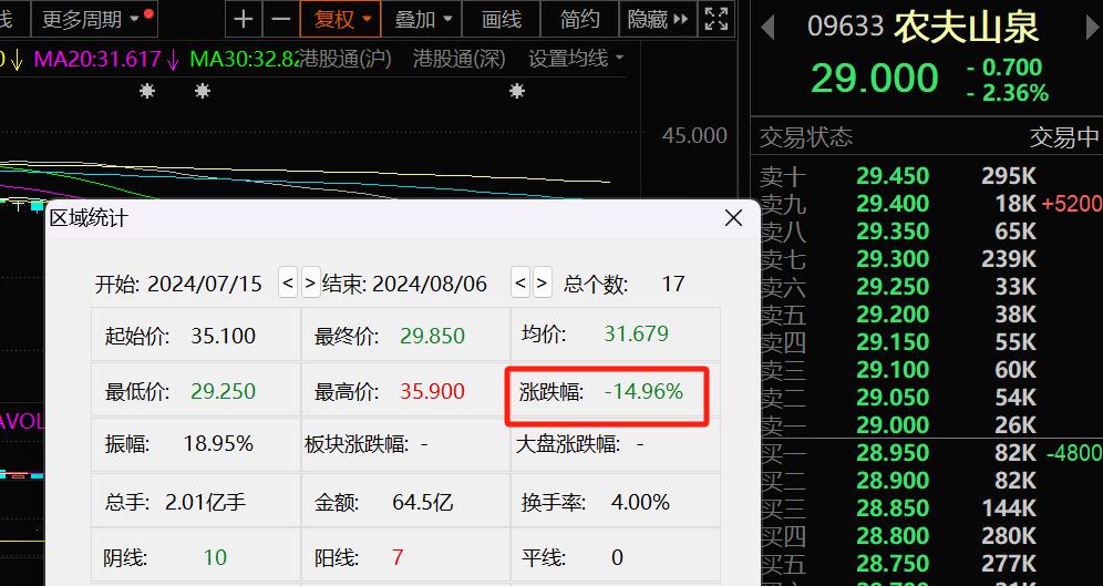 农夫山泉的律师函、消委会的道歉信都在为农夫山泉正名,但事实上,信任一但出现裂缝,想要完全修复谈何容易,更何况舆论的主角是本身就流年不利的农夫山泉。这一点从7月15日至8月6日,农夫山泉港股股价表现持续低迷,累计跌幅近15%中可见端倪。