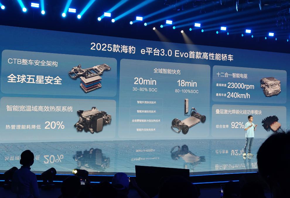 全链路800V架构意味着整车能耗的进一步下降,电压的提升也能带来更强的输出功率,当然看齐行业中的其他主流纯电产品、争得营销层面的优势也相当重要。至于全域智能快充技术的重要性不用多说,可以简单理解为2025款海豹可以更好地“榨干”第三方充电桩的潜力,不光是20%-80%区间的充电速度有所提升,最后的涓流充电部分也能顺利“提速”。
