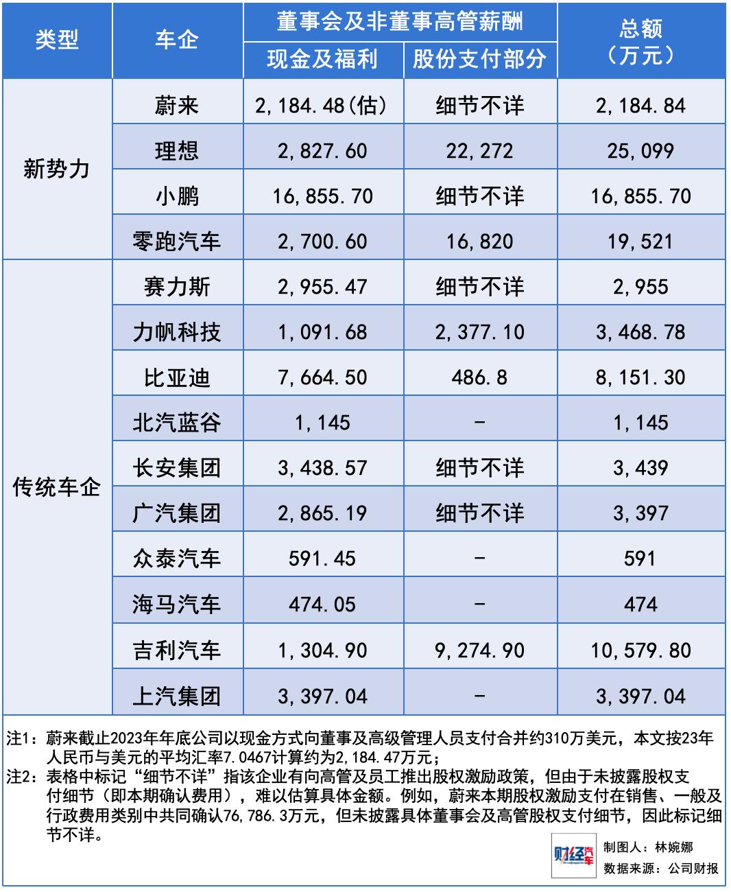 新势力车企与传统车企的高管薪酬水平差距悬殊。