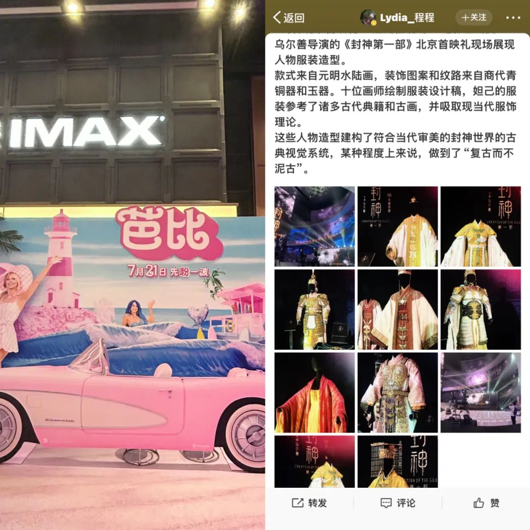 《封神1》则如同博物馆一样,把剧组的道具、服饰全都摆进了玻璃展柜,剧组现场气息扑面而来。再加上于适、陈牧驰等组成“封神男团”,在选秀叫停的岁月里上演路演选秀—成团—售后的好戏,狂吸了好一波粉丝。春节档要上映的《封神2》,恐怕也会因此提前锁定好一波票房。