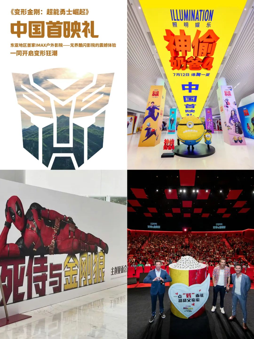 另外,阿开和另一个电影项目经理东东都不约而同地提到了在营销上、尤其是电影首映礼上,外片预算更高。“他们有钱,而且预算就花在活动和环宣上。”比如全文提到的《变形金刚》,在阿那亚山谷里搞户外首映,搭建了东亚首个户外IMAX影院;《神偷奶爸4》在上海迪士尼搞首映,彼时,多位受邀参加活动的媒体老师发朋友圈表示待遇规模很高;还有同样在上海做首映的《死侍与金刚狼》,邀来狼叔和贱贱等主创齐聚,影迷直呼圆满。