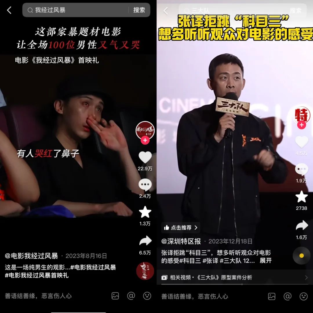 前两年,由于线下活动受限,影宣的主场由线下转移到线上。去年暑期档,利用短视频营销异军突起的《消失的她》和《孤注一掷》,在票房上的取得了绝对胜利,短视频对于电影营销的能量变成一种共识,影片的短视频营销打法,也逐渐成了一种习惯。