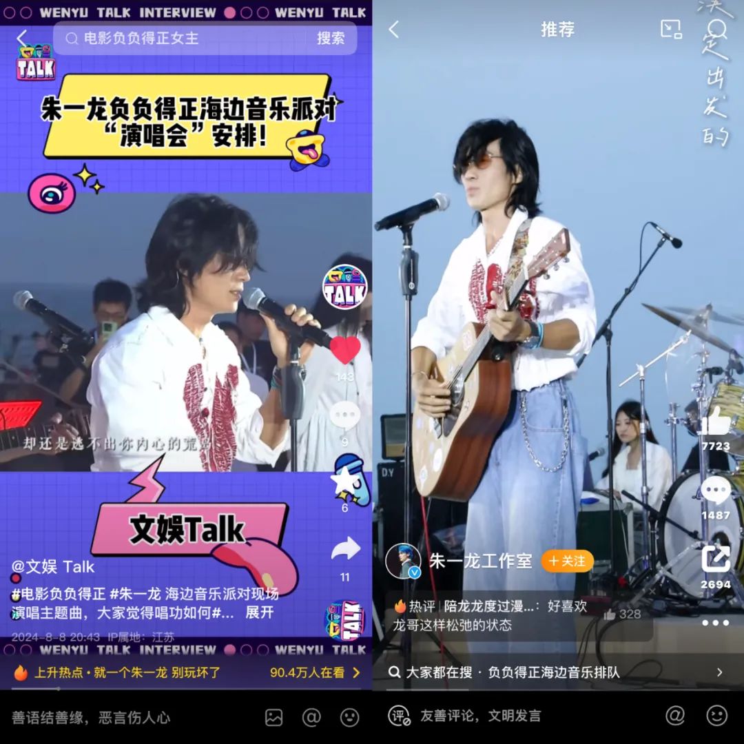 But,这可不是什么音乐节亦或者是音综,而是朱一龙、邱天、朱珠等人主演的电影《负负得正》的特别首映礼现场,官方命名——I SEA YOU海边音乐派对。