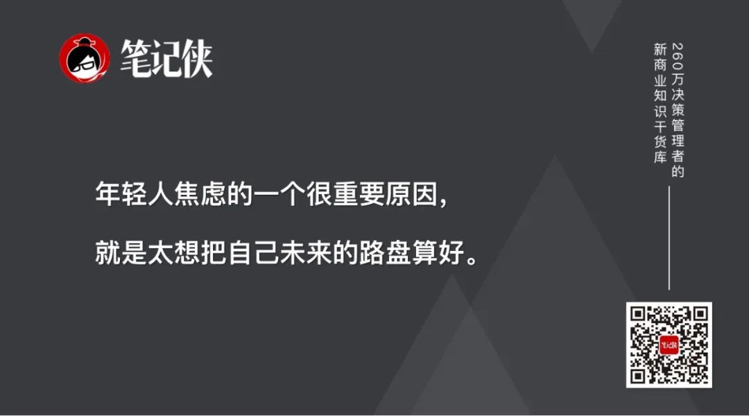 现在年轻人焦虑的一个很重要原因,就是太想把自己未来的路盘算好,把人生一步一步都计算得很精确,甚至想把这一辈子的事情都计划好。