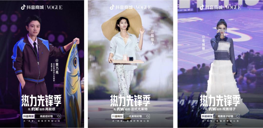 以抖音电商打造的“热力先锋季”活动为例,官方联合VOGUE提前发布了三大运动消费趋势、并上线《快乐向前冲》《超燃运动会》等电商内容,众多达人演绎趋势、推荐好物。与此同时,趋势货品在内容场和货架场也都得到资源扶持,加速转化,成为许多商家生意增长的动能之一。