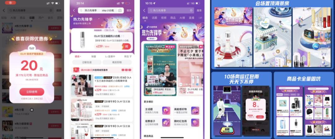 全程-充分参与货架玩法获得全域曝光:宝洁几乎参与了“热力先锋季”的所有货架场玩法。从活动会场置顶海景房,到全周期10场红包雨、百万量级红包反哺、banner直跳,借助抖音电商全量全周期的资源支持,宝洁在赛事周期内实现了生意的爆发式增长。