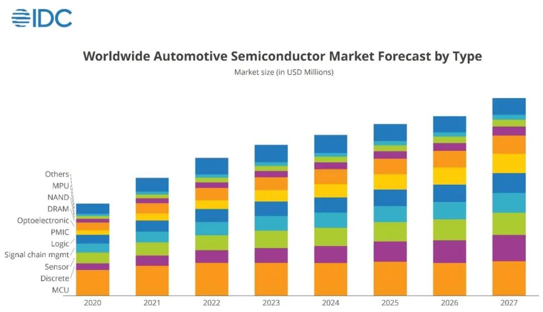 IDC也预测,到2027年,汽车半导体市场将出现大幅增长。逻辑芯片、内存芯片、微处理器、模拟芯片、光电器件、分立器件和传感器将共同推动收入大幅增长,而自动驾驶、ADAS 和车辆功能的进步将推动这一增长。“国内智驾芯片第一股”黑芝麻智能的成功上市,以及英特尔携锐炫车载独立显卡强势进军汽车智能座舱领域,这些都预示着汽车芯片行业即将迎来一个全新的黄金时代。