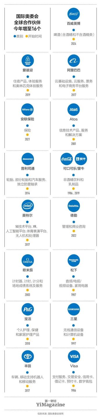 占到奥运先机最有利的位置,应该就是成为国际奥委会的全球官方合作伙伴,拿到官方入场券。但是,这个名额很少,2024年全球只有16个,中国品牌中有阿里巴巴和蒙牛。