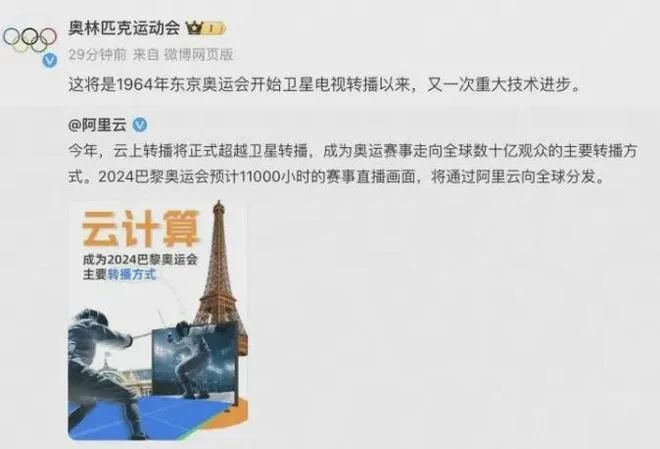 从2018年开始,阿里云就已经与奥林匹克广播服务公司合作,共同打造OBS Cloud。7年后的今天,阿里云让云计算首次超越卫星,成为奥运转播主要方式,超过三分之二奥运直播信号将通过阿里云支撑的奥运转播云,从巴黎传输到全球200多个国家和地区。