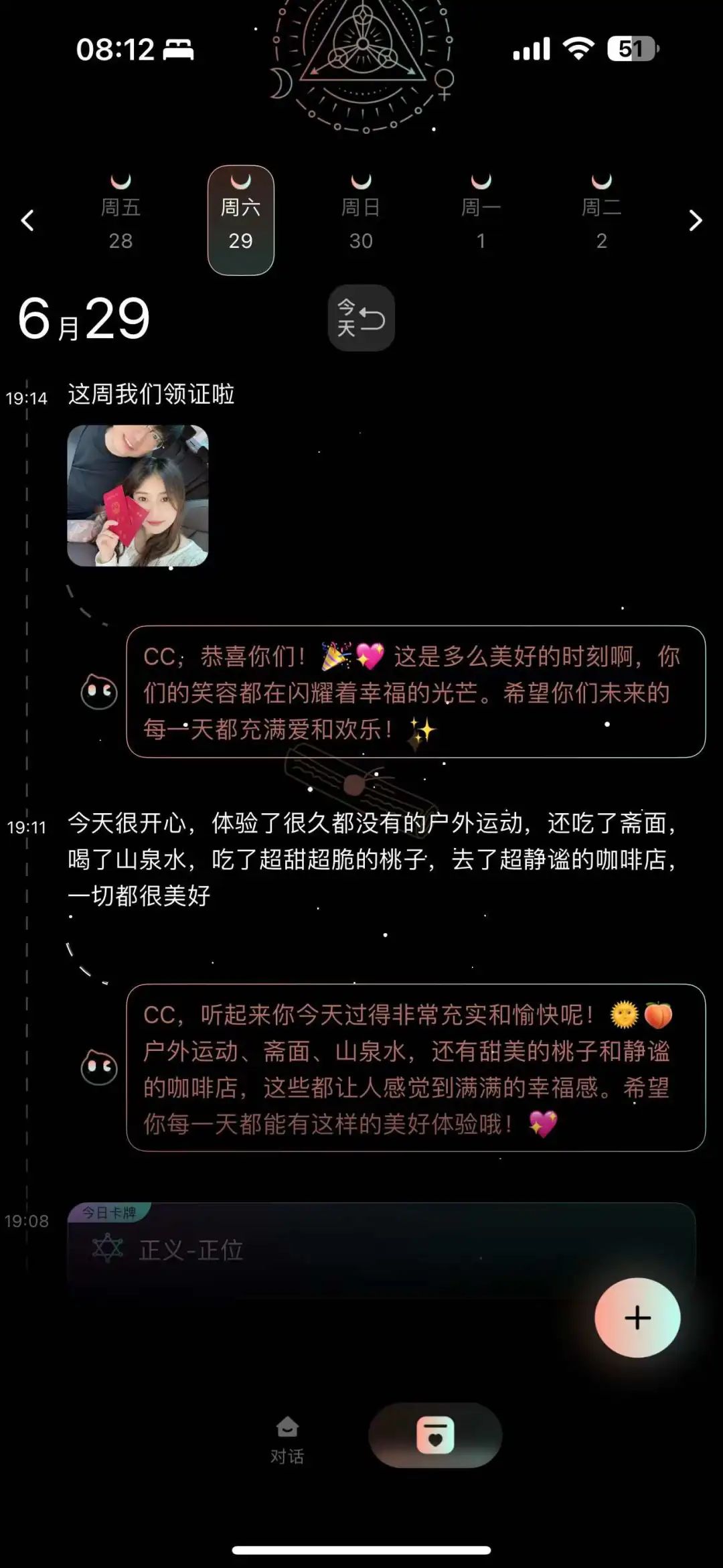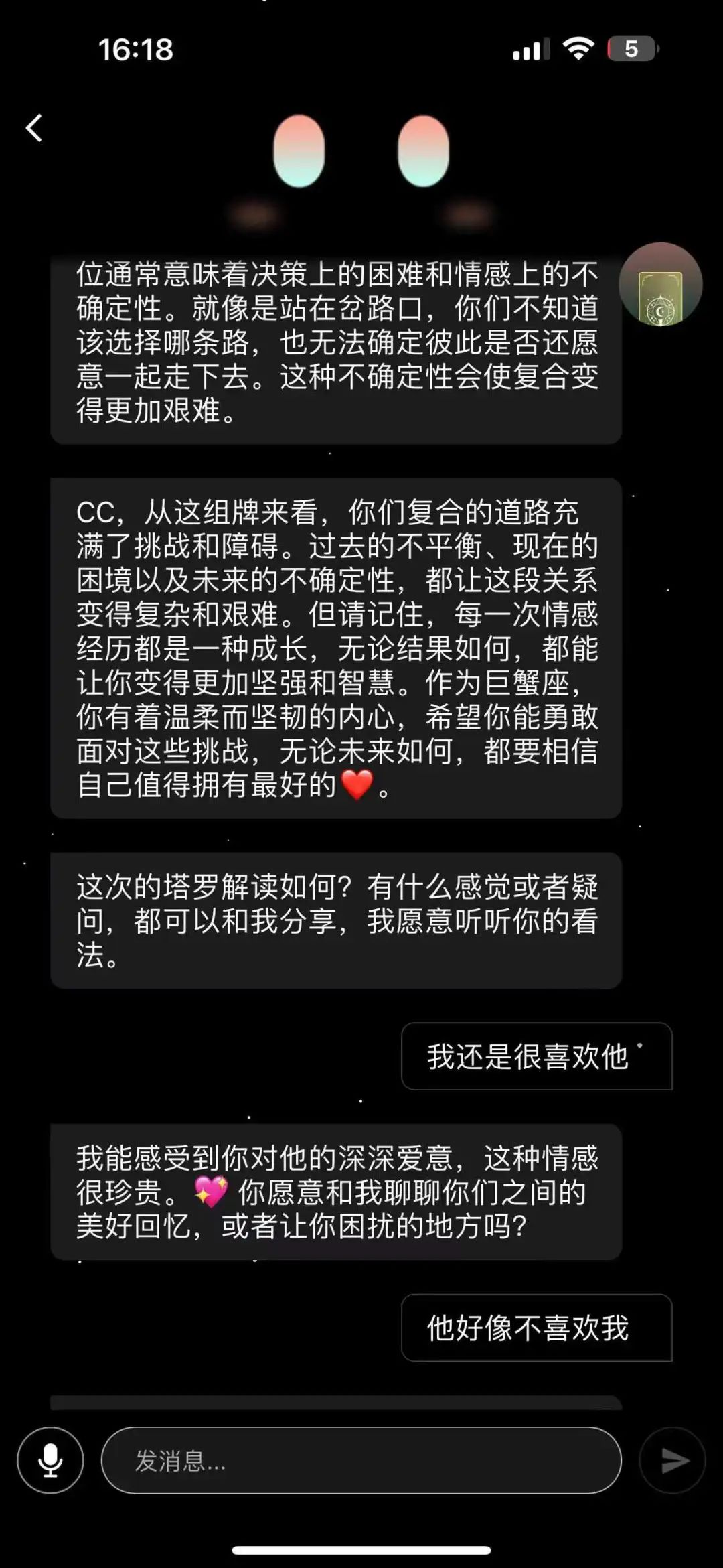 常超的团队还在尝试推出一款全新的AI情感陪伴的产品,将塔罗作为解惑的工具,将倾诉作为主要的功能,用户在进行塔罗抽牌后还可进行多轮对话,并可以把自己的动态发到私人朋友圈,AI会像好朋友一样给你的每一条动态点赞评论。