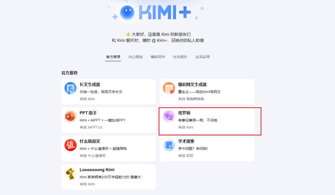 在这点基础上,AI又可以大幅降低成本,让年轻人少了被骗的可能。毕竟有了AI之后,占卜的成本骤降到0。打开Kimi,就能看到官方推荐的塔罗师,一分钱不要,就能获得和真人塔罗师几乎一致的结果。