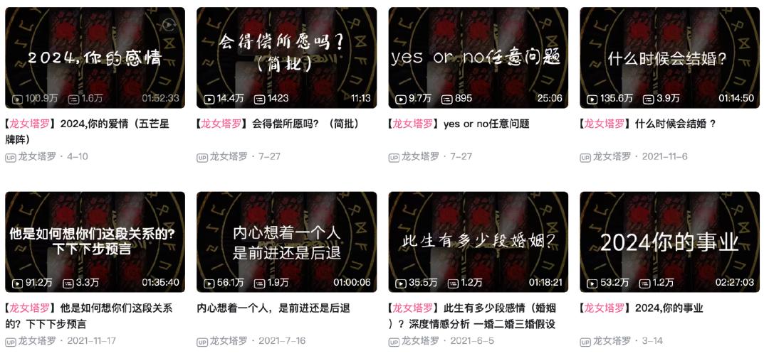 有人觉得,AI玄学是一个很小众的市场,其实不然,玄学的市场大到你想象不到。在某书,玄学话题浏览量高达21.2亿人次,接好运的帖子甚至有11万的点赞;在B站,龙女塔罗的大众占卜视频有100万人在线观看,满屏的领取好运;在微信,玄学的搜索指数高达4400万。