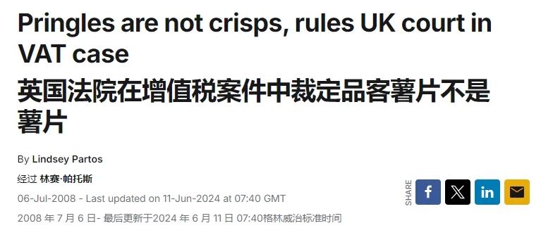 英国法院先认同品客的确不是薯片,后面又反悔,最终裁定品客就是薯片,品客也乖乖地交了钱。