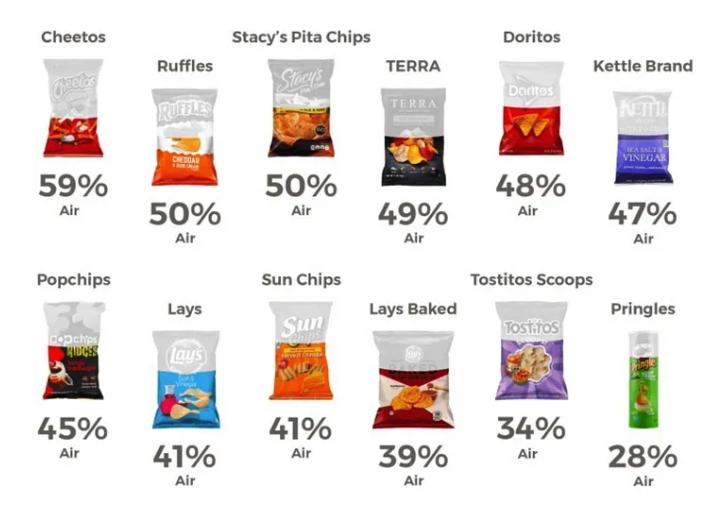 甚至,哪怕是袋装的品客薯片,包装里的氮气保护填充,都比友商们少。