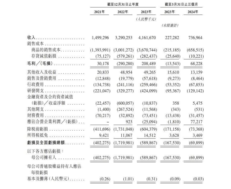 虽然营收规模增速快,但正力新能尚未实现盈利,2021年至2024年一季度,其净亏损分别为4.02亿元、17.20亿元、5.90亿元和0.70亿元,累计亏损27.82亿元。