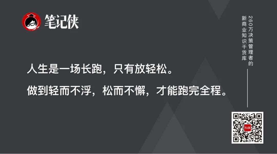 正如《轻松主义》里说:“人生是一场长跑,只有放轻松。做到轻而不浮,松而不懈,才能跑完全程。”