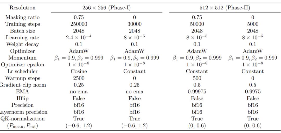 另外,与LLM训练不同的是,当对AdamW二阶矩 (β) 使用更高的运行平均系数时,本文的扩散模型可以达到更好的性能。