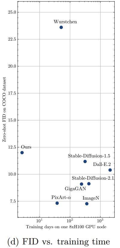 之前最便宜的方法(Wuerstchen)用了28400美元,而像Stable Diffusion这样的模型还要再贵一个数量级。