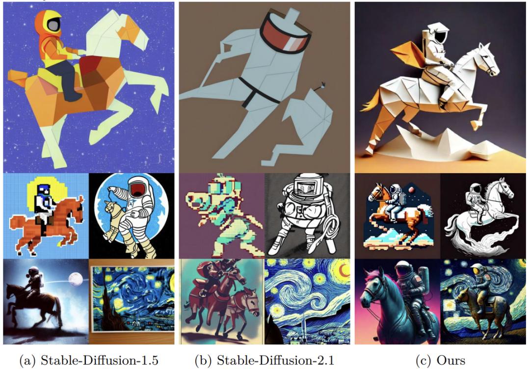 文本编码器选择了最常用的CLIP模型,尽管T5-xxl这种较大的模型在文本合成等具有挑战性的任务上表现更好,但为了省钱的目标,这里没有采用。
