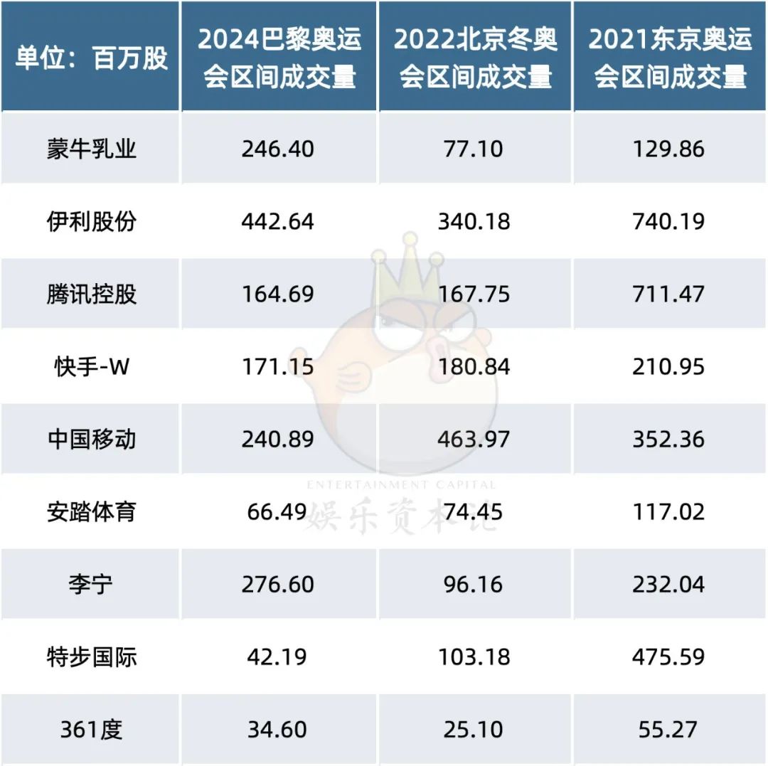 但归根结底,2008年奥运会依靠赞助扭转行业地位的时代已经过去,如今的奥运赞助更像是“人有我有”的“军备竞赛”。对比2022年的北京冬奥会,此次奥运期间,奥运相关股票的成交量放大、绝对收益和与指数相比的相对收益却较之前下降。