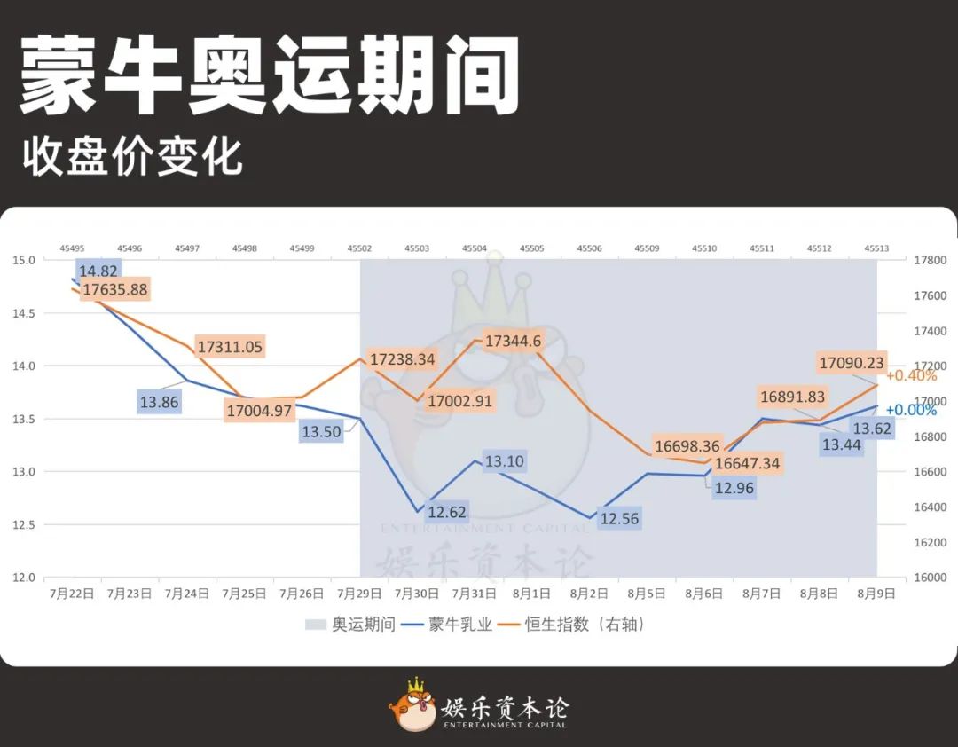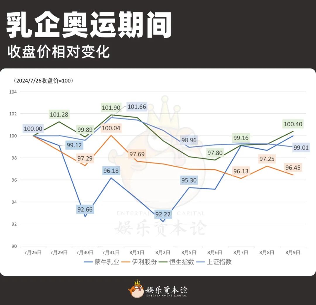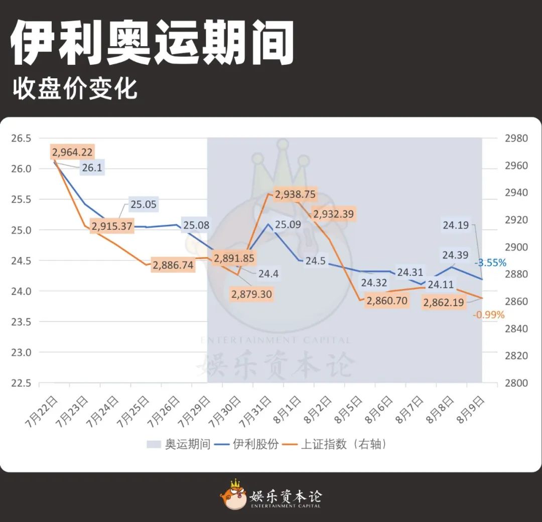 对于伊利而言,普通赞助商的身份让伊利能够更加灵活的出牌;而奥运期间伊利创造的流量也相对更加可观。但是资本市场似乎对流量的转化率抱有疑问,任凭赛事后期伊利的营销风波如何发展,我自巍然不动——多日股价涨跌幅绝对值保持在1%以内。