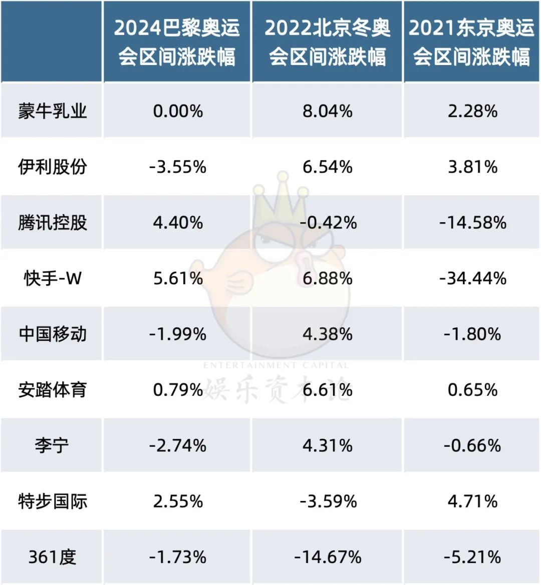 “奥运经济”到底造就了多少流量、产生多少实际销售额,目前我们不得而知。但资本市场的反应总是最为迅速的。我们选取包括乳企赞助商、转播商、体育品牌在内的10家上市企业,试图通过它们在此次奥运期间的股价表现,探究资本市场对这轮“奥运经济”的真实态度。