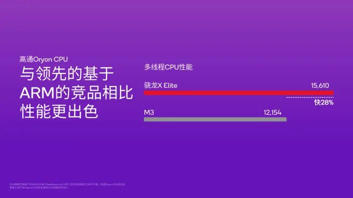从我个人来看,高通骁龙X Elite本质上也是不需要什么高性能的,一来目标受众的使用场景本质上不需要什么特别高的性能,二来在Windows平台,如果有高性能需求,那么英特尔和AMD显然是更好、更稳妥的选择,高通的境地并不像苹果那般,M芯片需要同时承担起绝对高的性能上限和高能效比,Windows一方是已经有了x86架构的Intel与AMD,高通或许在能效比上面加大力度才是更能打出差异化的选择。但是我前面已经讲到了,高通如果想要扭转掉消费者对于Arm处理器的性能孱弱的认知,最好的方法就是掏出来一颗性能足够强的产品来,所以高通这次在骁龙X Elite的性能上做的研发努力以及宣传,在我看来都是在弥补高通之前芯片的不足。