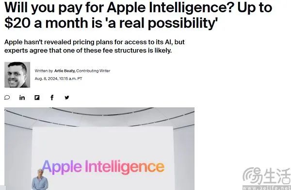 只不过,Apple Intelligence可能不是苹果送给用户的免费福利。