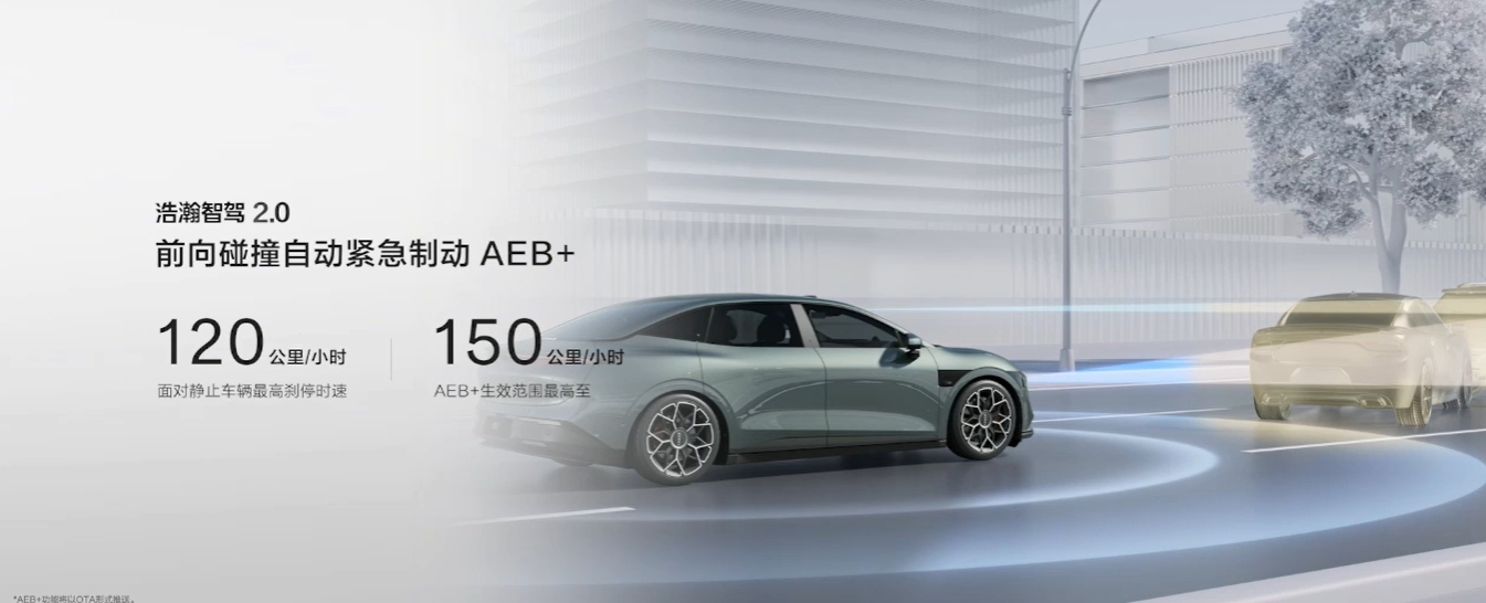 还有一点不得不提,大家比较关注的AEB能力在2025款极氪007上也得到了提升。主要是工作范围的进一步扩大,2025款极氪007的AEB生效时速来到了静止障碍物120km/h、运动物体150km/h生效。