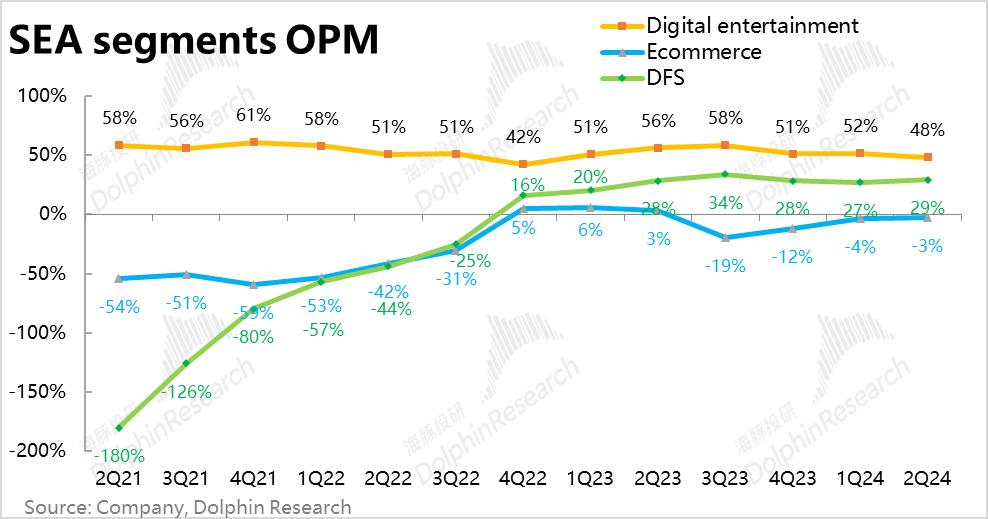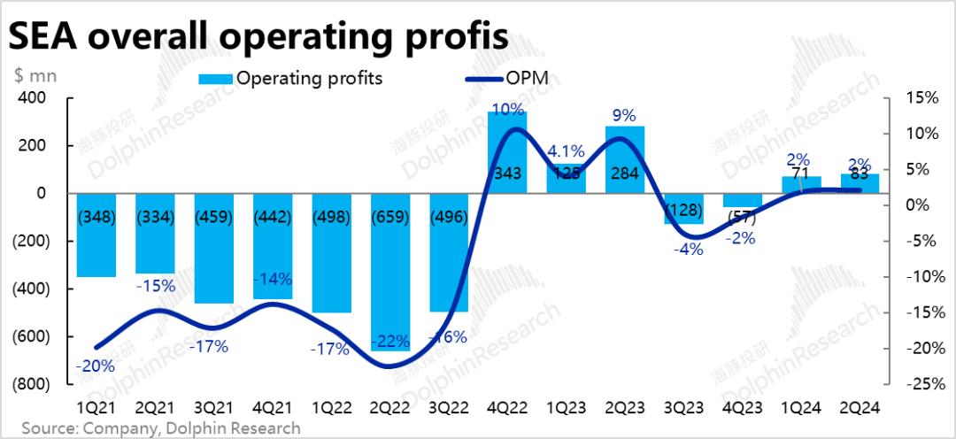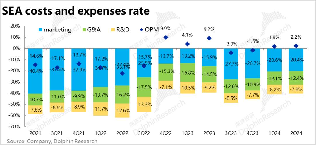 小结上文,增长层面,电商板块虽然环比增长停顿,但相比预期更强。Garena游戏板块虽营收看似较弱,但用户和流水持续回暖,至于SeaMoney则维持着高质量增长的态势。总体来看,增长端不求有功,但至少无过。
