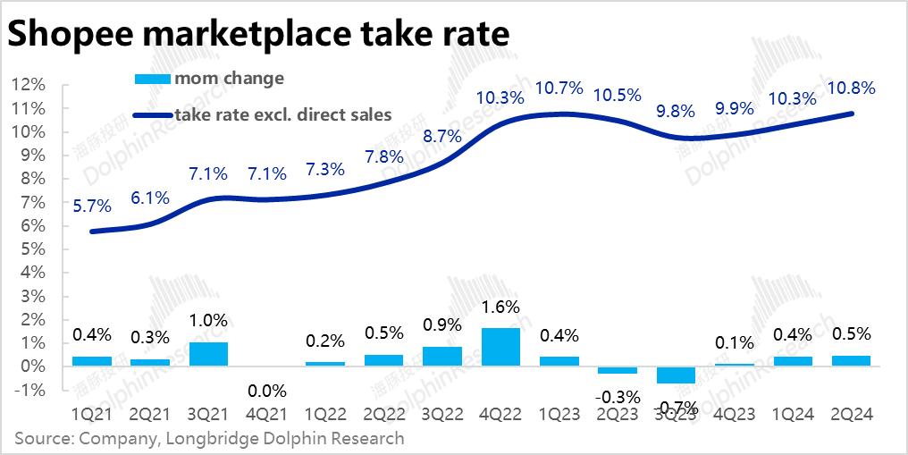 根据我们测算,平台业务的变现率环比继续提升了约0.5pct到10.8%,据我们了解Tiktok Shop和Shopee等电商平台在东南亚“携手”提高变现的情况仍在继续。我们认为变现率的走高显然有利于公司的业绩,但从竞争的角度变现率的提升终究是以商家负担的上升为代价的,无法永续提升下去。