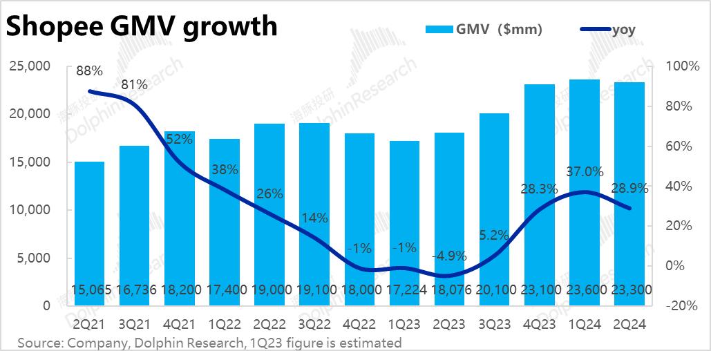 5、整体来看,主要由于电商板块比预期更强的增长,本季Sea整体实现收入38.1亿,同比增长23%,和上季度持平并未放缓,比市场预期的增速高3pct。
