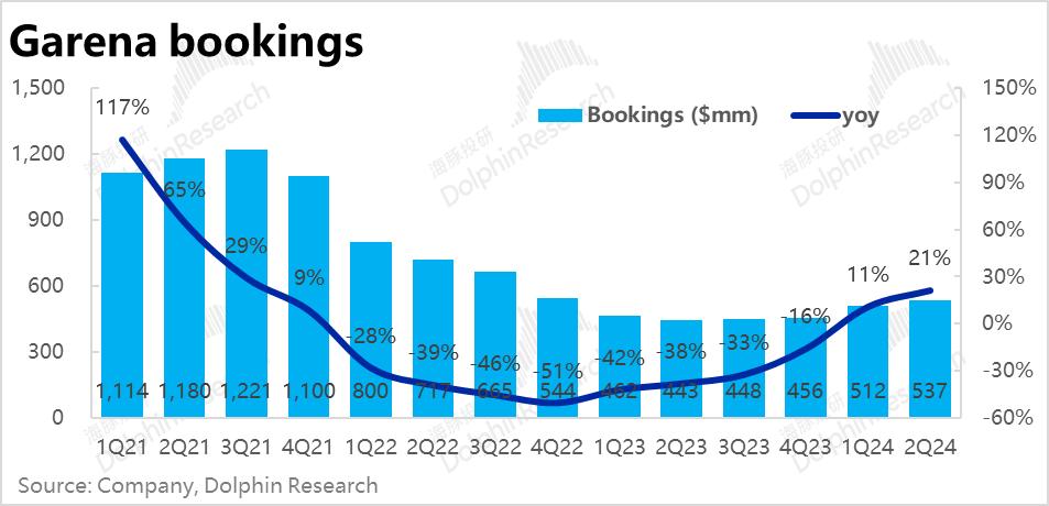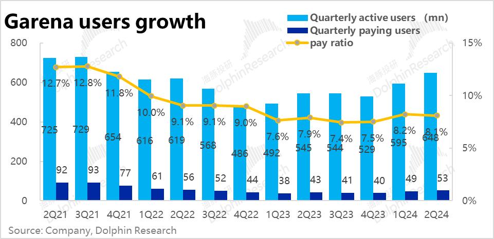 而在强劲的用户增长驱动下,关键的游戏流水本季继续环比增长5%到5.4亿,因此本季Garena游戏业务的表现并不差,是继续呈现慢慢回暖的趋势。
