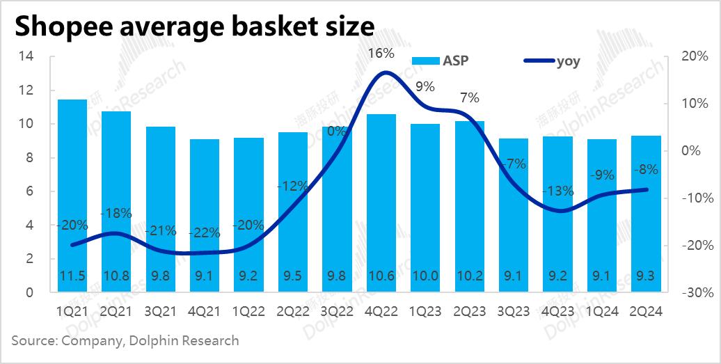 1、最关键的Shopee电商板块,本季GMV为233亿,虽因季节性因素环比略降,但相比更保守的市场预期高出约4.3亿。价量驱动上维持着以价换量的趋势,相比前两个季度没有明显变化。不过环比来看,Shopee的GMV规模已连续3个季度没有明显增长,需要关注Shopee的增长是否再度进入了瓶颈期。