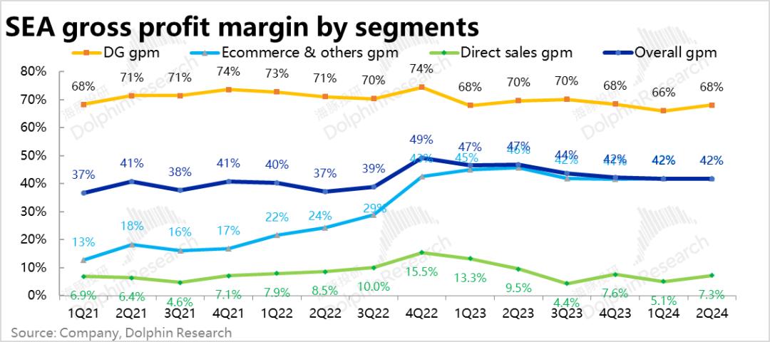 毛利层面,本季公司整体实现毛利润15.9亿,毛利率环比大体持平在42%,并未像市场预期的环比有所提升。但细分来看,游戏和自营零售业务的毛利是环比提升的,电商和金融业务的毛利也环比持平。换言之,各细分业务的毛利率实际是持平或改善的,但公司整体毛利率原地踏步是因为营收结构中低毛利业务的比重上升导致的。