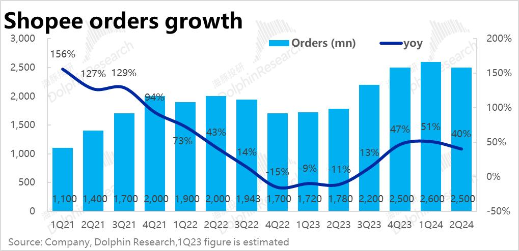 拆分价量来看,本季订单量为25亿,环比上季度略降,但更低基数下同比增速达到40%,仍是明显跑赢GMV增长。