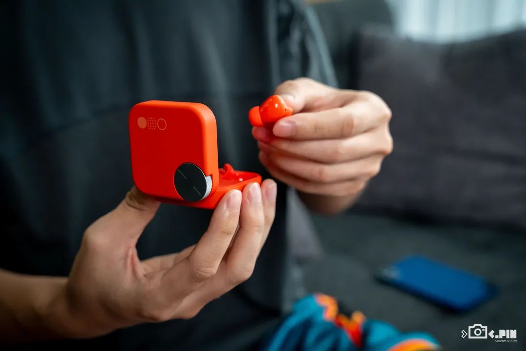 托尼最喜欢的就是手里这款橙色,配色非常鲜亮,而且耳机盒表面采用了类肤质而不是光滑材质,可以减少划痕。