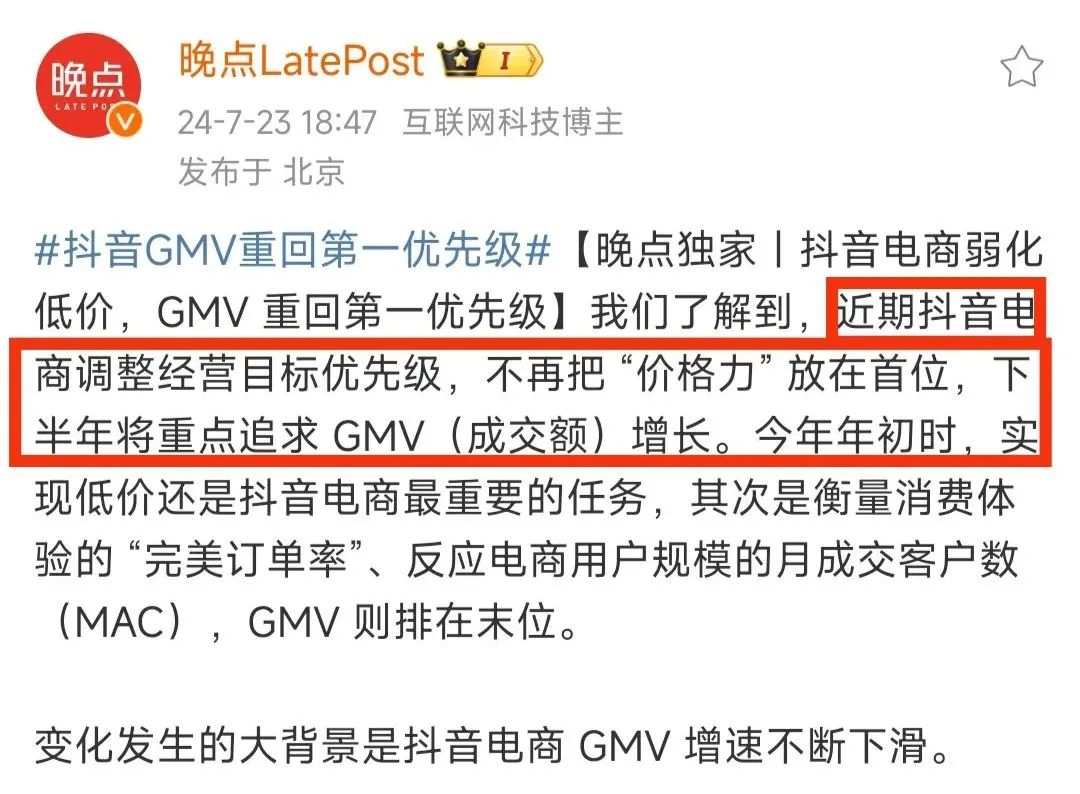 一系列信号表明,抖音大概率不想再一味地低价内卷了。