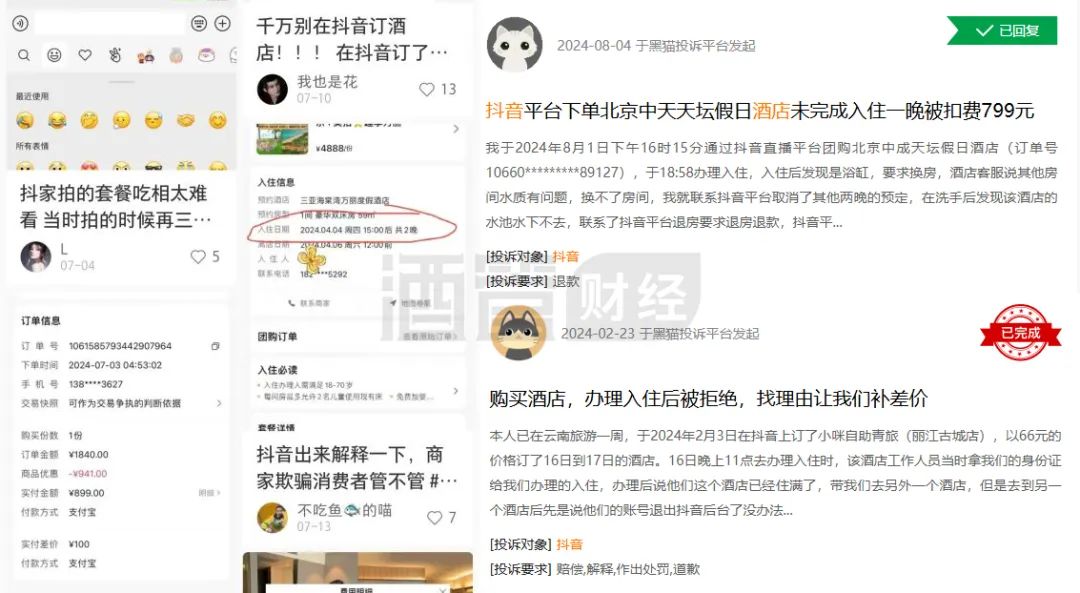 《酒管财经》注意到,虽然抖音持续加大整顿力度,但除了旅游,在酒店、餐饮等板块仍存在部分“低价”乱象。在小红书、黑猫投诉等平台,仍有不少消费者曝光投诉抖音酒旅商家的“低价”乱象。