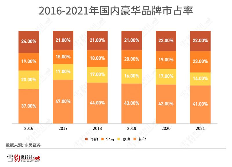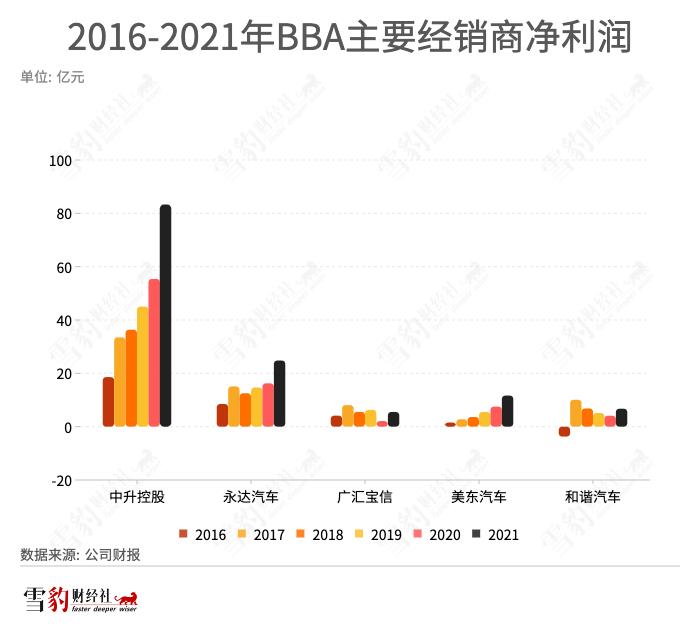 2016-2021年,BBA在国内30万以上汽车市场的合计市占率均在50%以上。BBA在高端市场的主导地位,也给经销商们带来丰厚的利润。