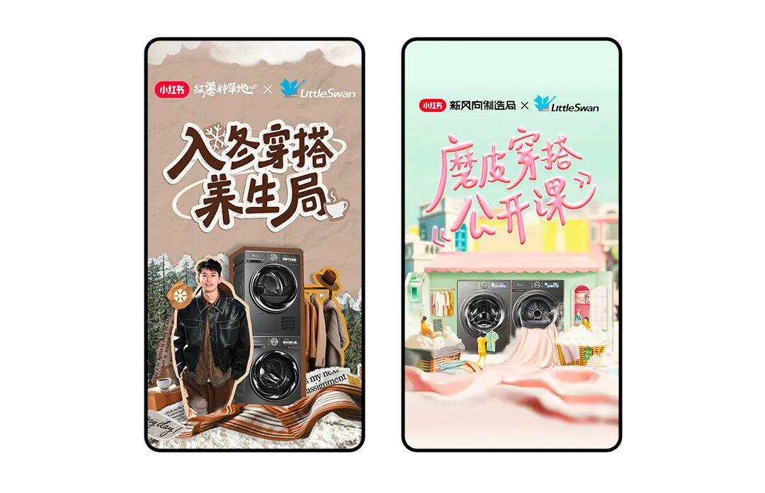 在小红书的判断中,关注其主打健康杀菌、养护衣物产品特性,以及洗衣机的人群,同样是养生、穿搭、潮流等话题的受众。而基于新群体的锚定,成为小天鹅新品“一站种草、全域转化”的战略基础。而具体的增长也清晰可见,除了小红书站内GMV增长300%之外,全域月均GMV也突破了6000万。