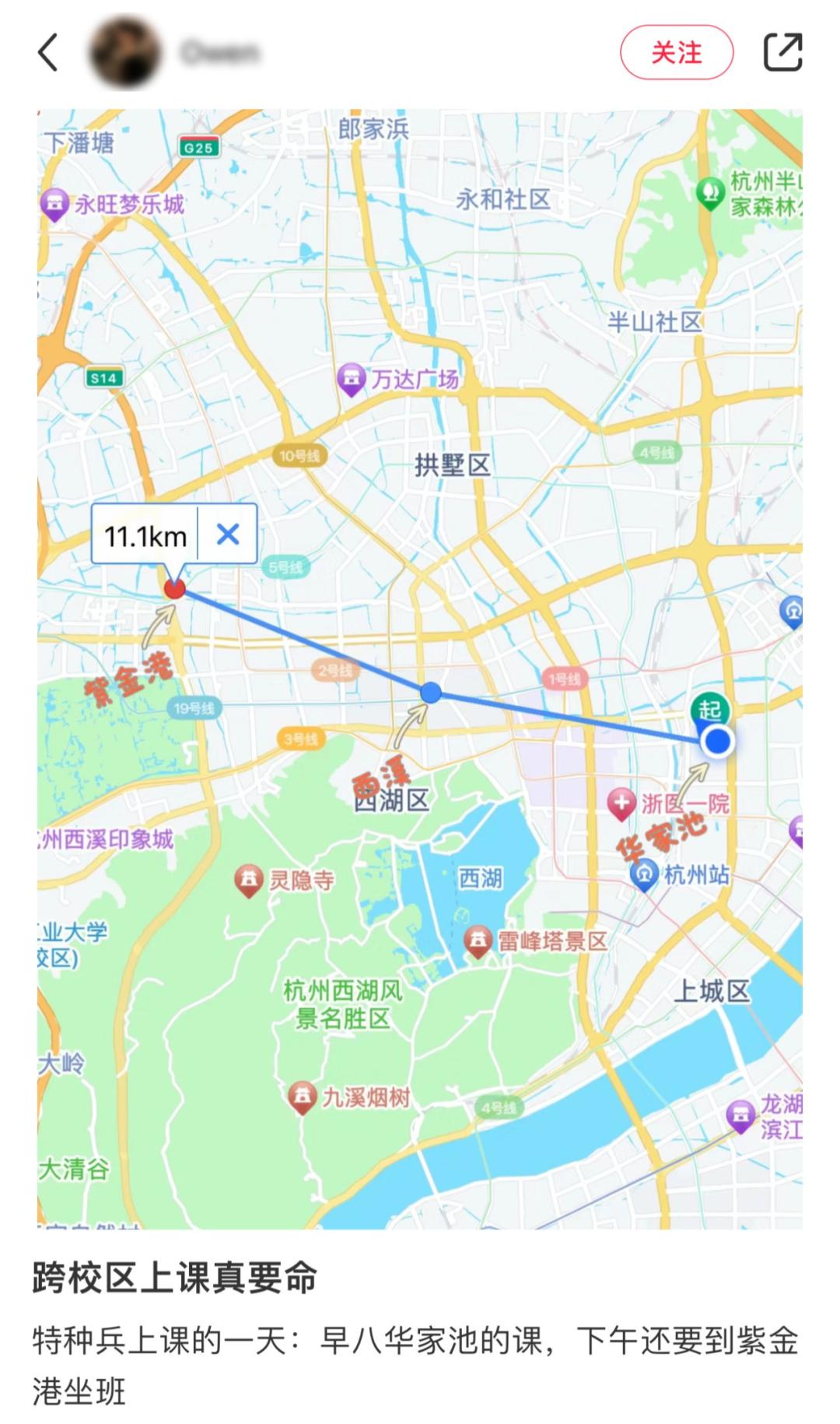 这些还都只是单校区内上课,还有一些大学,是需要跨区奔波才能全勤的。
