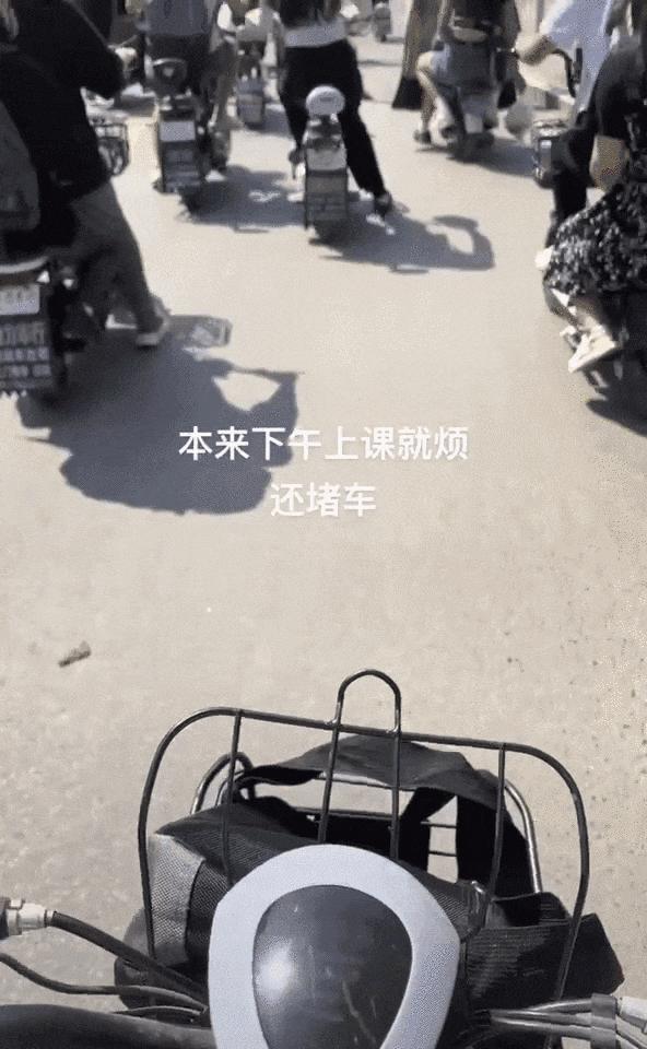 由于“人均电动车拥有量”太高,通往教学楼的道路经常堵得无法通行,宿舍远的同学,上课需要提前一小时从宿舍床上出发。